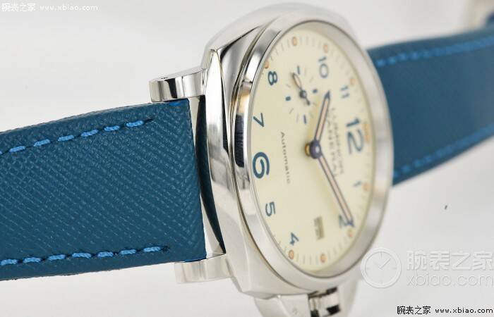 象牙色表盘,饰以夜光圆点时标、大型蓝色数字和同色指针等经典沛纳海设计,绽放独有光芒,在较暗的环境下亦能够观察时间。腕表的3点钟位置设日期显示窗,为其再添一个实用功能。