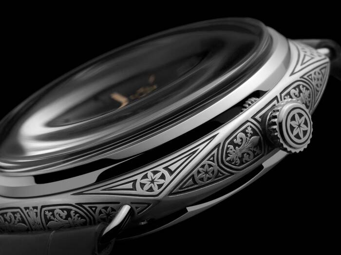 这枚腕表的设计从佛罗伦萨插图作品中反复出现的图案汲取灵感,例如佛罗伦萨百合,它是托斯卡纳自11世纪以来最重要城市的象征。47毫米磨砂精钢表壳在尺寸上与沛纳海在1936年创制的首款腕表完全相同。一位镌刻师需要超过一个星期的时间才能完成装饰工作,由于表壳是以坚硬的AISI 316L精钢制成,装饰过程要求之严苛可想而知。腕表内部搭载一枚型号为P.3000手动上链机械式机芯,完全由沛纳海研制,机芯每小时振动21,600次,能为腕表提供3日动力储存。