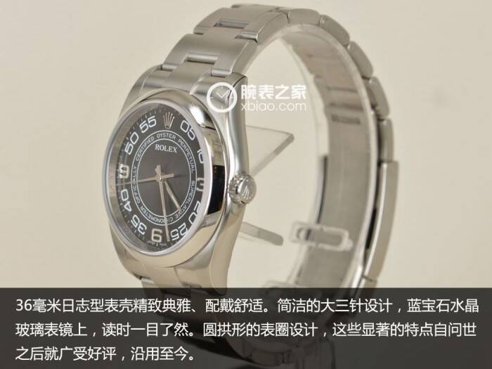 36毫米日志型表壳精致典雅、配戴舒适。简洁的大三针设计,蓝宝石水晶玻璃表镜上,读时一目了然。圆拱形的表圈设计,这些显著的特点自问世之后就广受好评,沿用至今。蚝式表壳是劳力士显赫声誉与卓越性能的重要基础,材质为904L不锈钢,904L不锈钢具备高抗腐蚀广泛用于高科技、航空及化工行业。