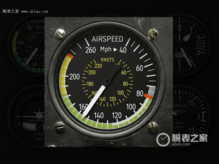 柏莱士设计师揣摩空速表的外型结构,创作出独具匠心且清晰易读的时间显示--将原始空速表的内圈刻度用于显示小时,剑形指针的针尖严密的沿着刻度转动,分针和秒针则共用外圈刻度,在传统大三针的基础上将时针的表盘与分针秒针的表盘分开,另一方面将空速表上的白、绿、黄用于腕表表圈作为每一刻的标记,不仅高度还原了空速表原本的平面造型,还大大增加了腕表的易读性。